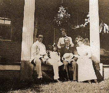 Franklin Delano Roosevelt, his father, mother, and cousins Ellen, Laura, Sara, and Jean Delano. Fairhaven, MA.